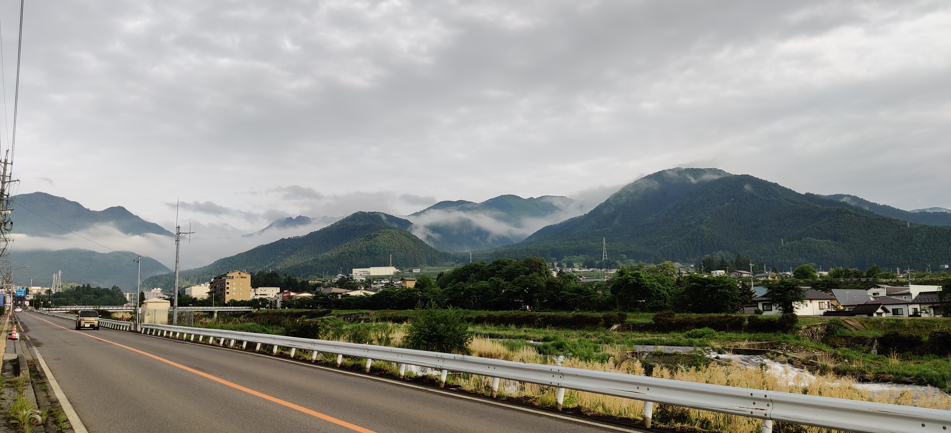 Pienen kylän katsastamiskierroksen aikana nähtiin, kuinka kauniissa ympäristössä Yamanouchi sijaitsee, vuoristomaisemaa sävyttivät vielä kuvauksellisesti vuorenrinteitä peittävät pilvet. Kääntöpuolena pikkupaikkakunnan kohtalo tuli esille ränsistyneiden ja hylättyjen talojen muodossa. Majoituspaikassamme saimme todella maittavan ja monipuolisen päivällisen.