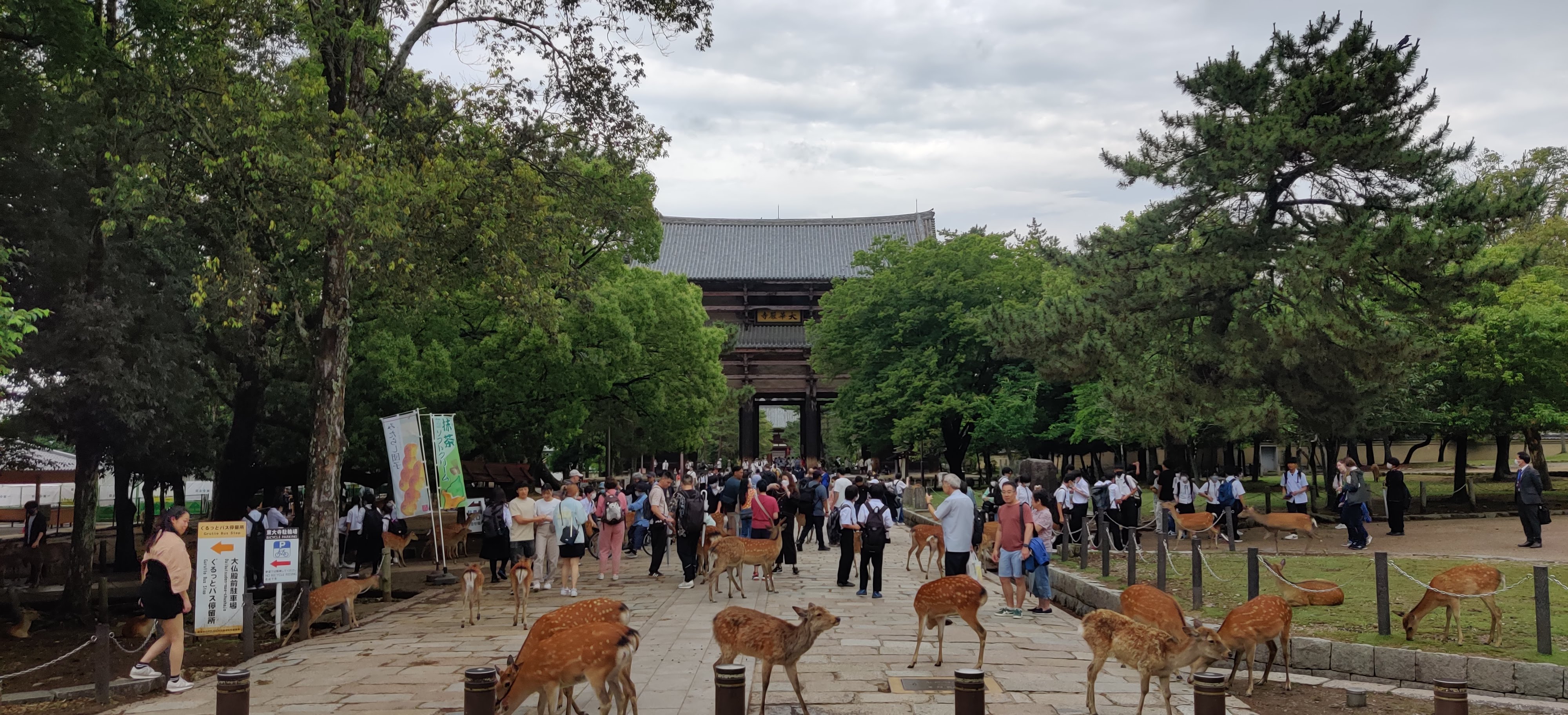 Vuorossa oli jälleen reissupäivä, sillä suuntasimme kohti Tokiota. Sitä ennen oli kuitenkin tarkoitus pysähtyä yhdessä suositussa kohteessa eli Naran kaupungissa. Se on tunnettu puisto- ja temppelialueestaan ja siellä käyskentelevistä peuroista. Turistit syöttävät niille tarkoitettuja keksejä, joiden tuotot menevät paikallisen temppelin kassaan. Protokollaan kuuluu kumartaa peuralle, jotka ovat oppineet kumartamaan takaisin keksejä saadakseen. Ja noh, kyllä ne nappaavat syötävän itselleen muutenkin, jos turisti on varomaton.