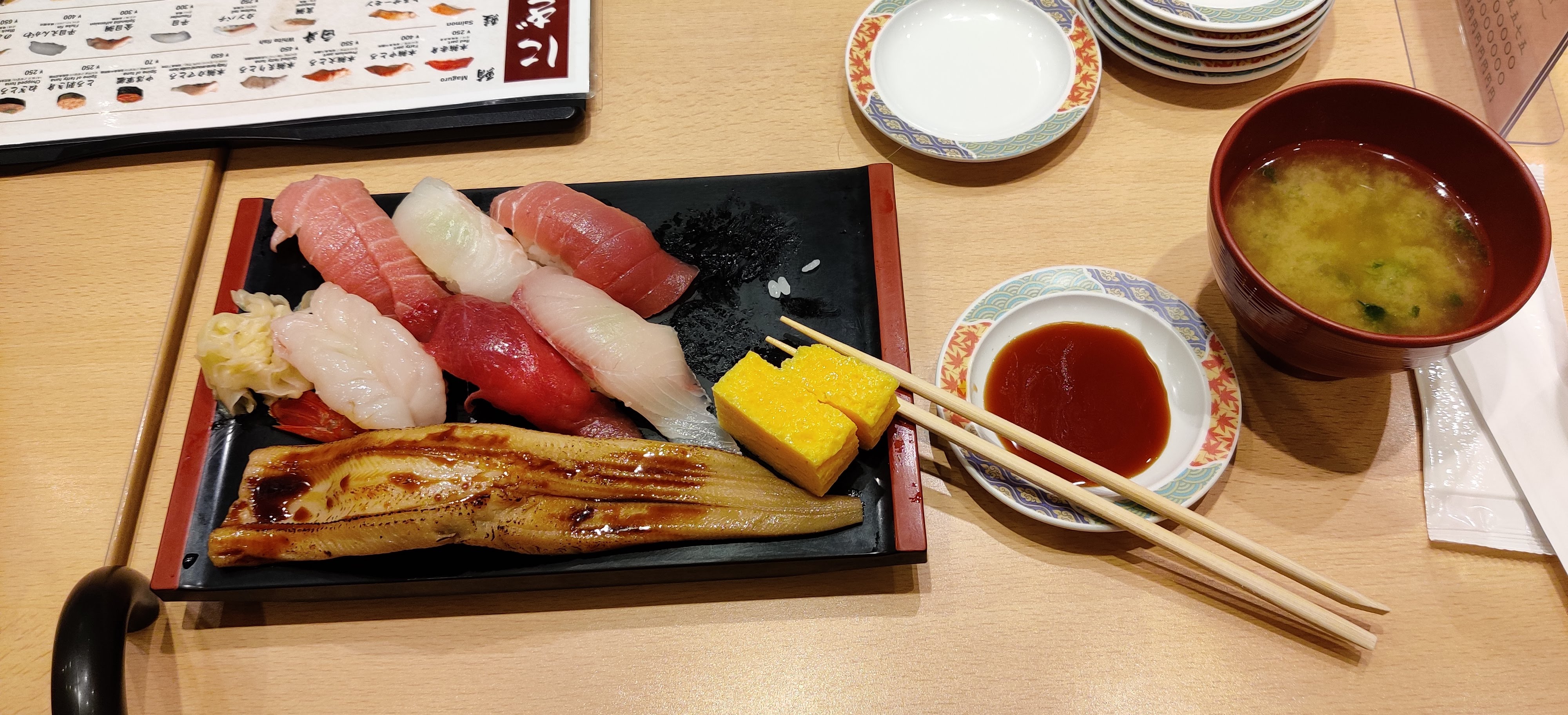 Tokion asemalla söimme viimeisen aterian Japanin maaperällä, mitäs muutakaan kuin sushia. Tämä oli matkan toisiksi paras sushiravintola Hakodaten jälkeen. Ravintolan nimeä en valitettavasti muista.